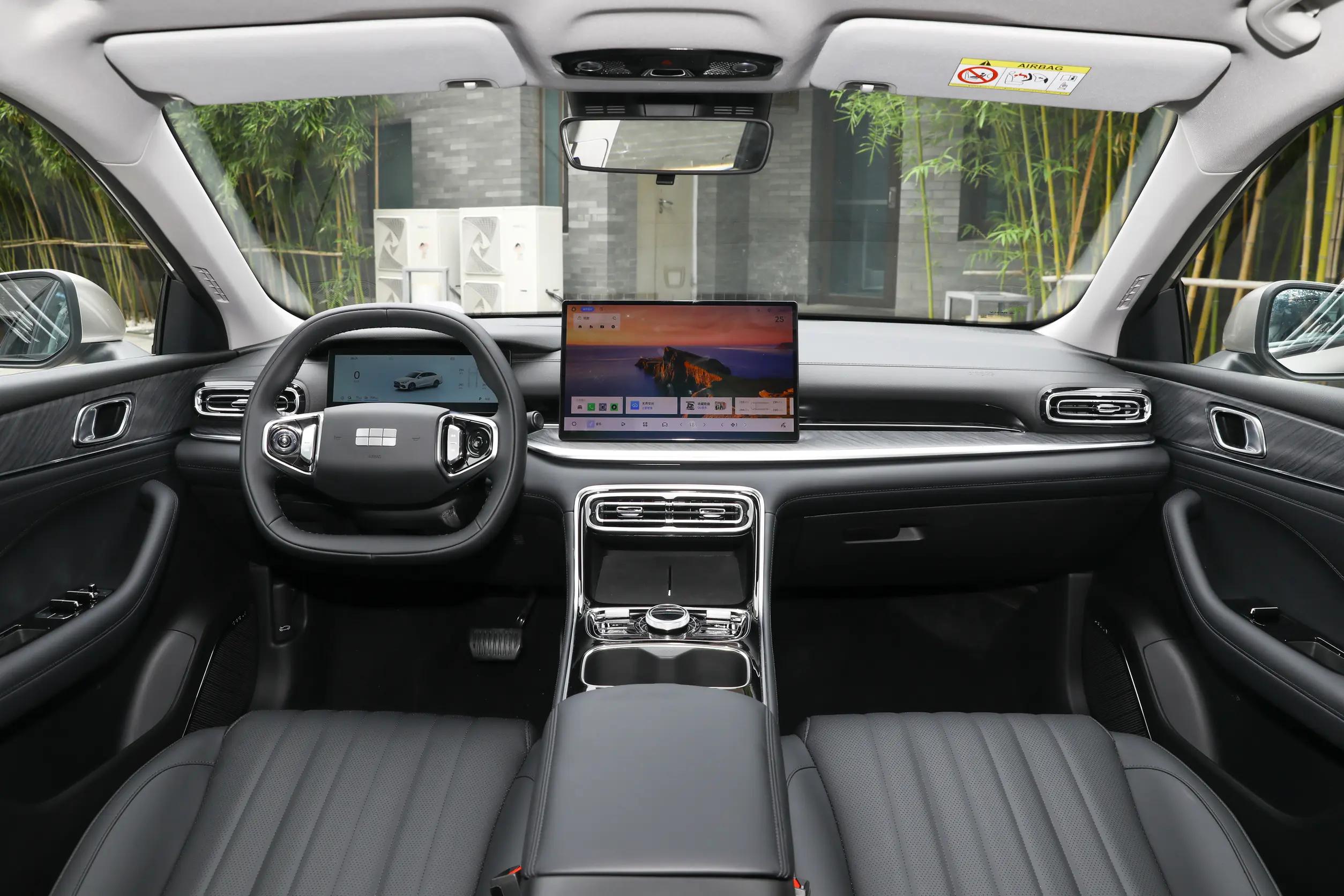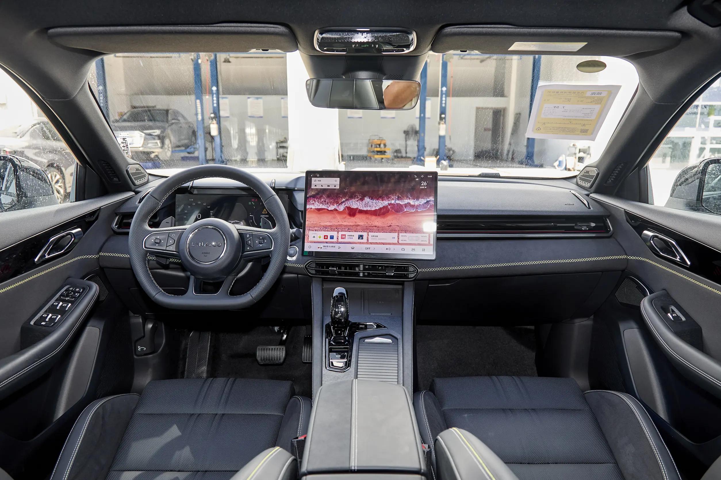 车内造型变化不大,配备15.4英寸中控屏和12.3英寸数字仪表,采用LYNK Flyme车机系统和龙鹰1号芯片。配置上,新车将搭载千里浩瀚H3驾辅系统,配备25.6英寸AR-HUD抬头显示、14扬声器等配置。
