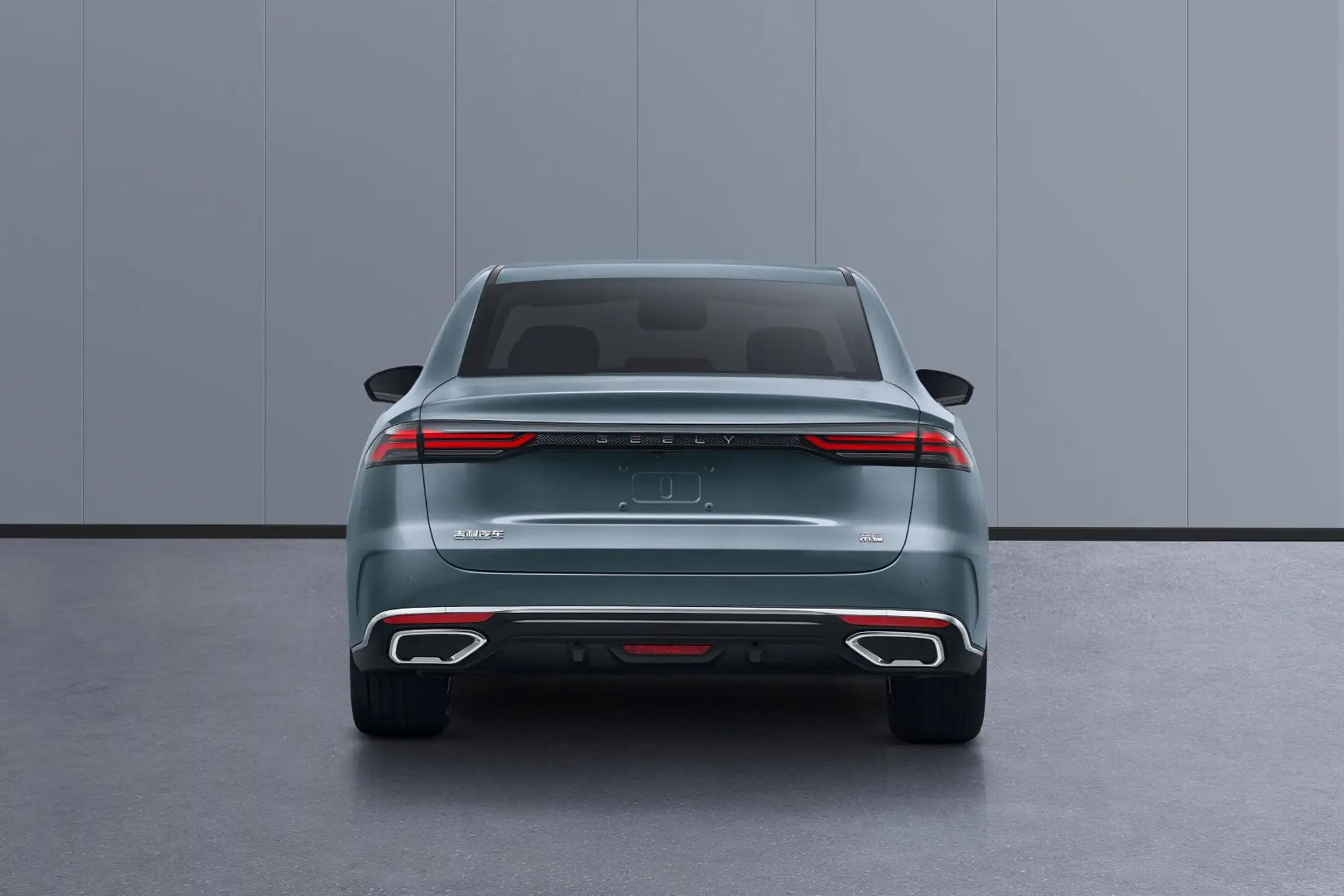 侧面线条凌厉,隐藏式车窗配合溜背车顶显得动感十足,并配备贯穿式尾灯、小鸭尾和双边单出方形排气。全新帝豪车身尺寸大幅提升,长宽高分别为4815/1885/1480mm,轴距2755mm,相比吉利星瑞车长仅短1cm、轴距短4.5cm。